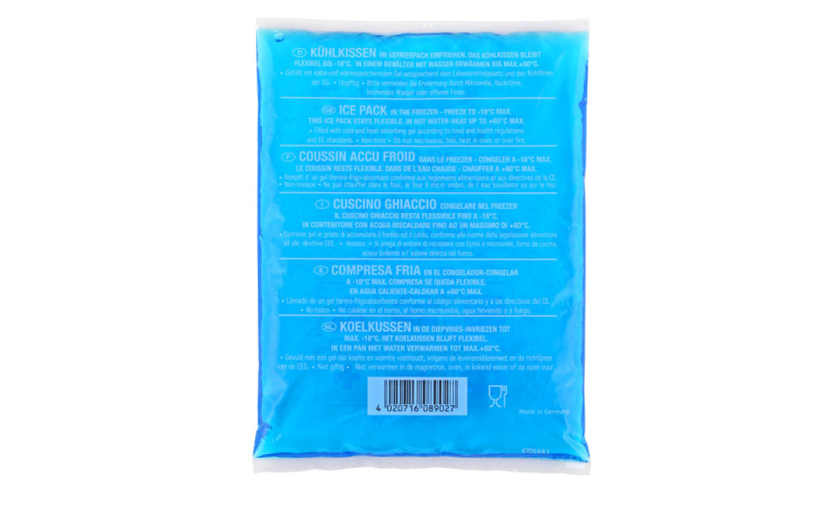 Аккумуляторы температуры EZETIL® Soft Ice выполнены в виде прозрачных герметично запаянных полиэтиленовых пакетов с гелевым наполнителем голубого или прозрачного цвета. Свойства геля позволяют в режиме заморозки сохранять мягкость пакета и использовать его в нужной форме. Soft Ice EZETIL® предлагаются в объемах 100гр, 200гр, 600гр.