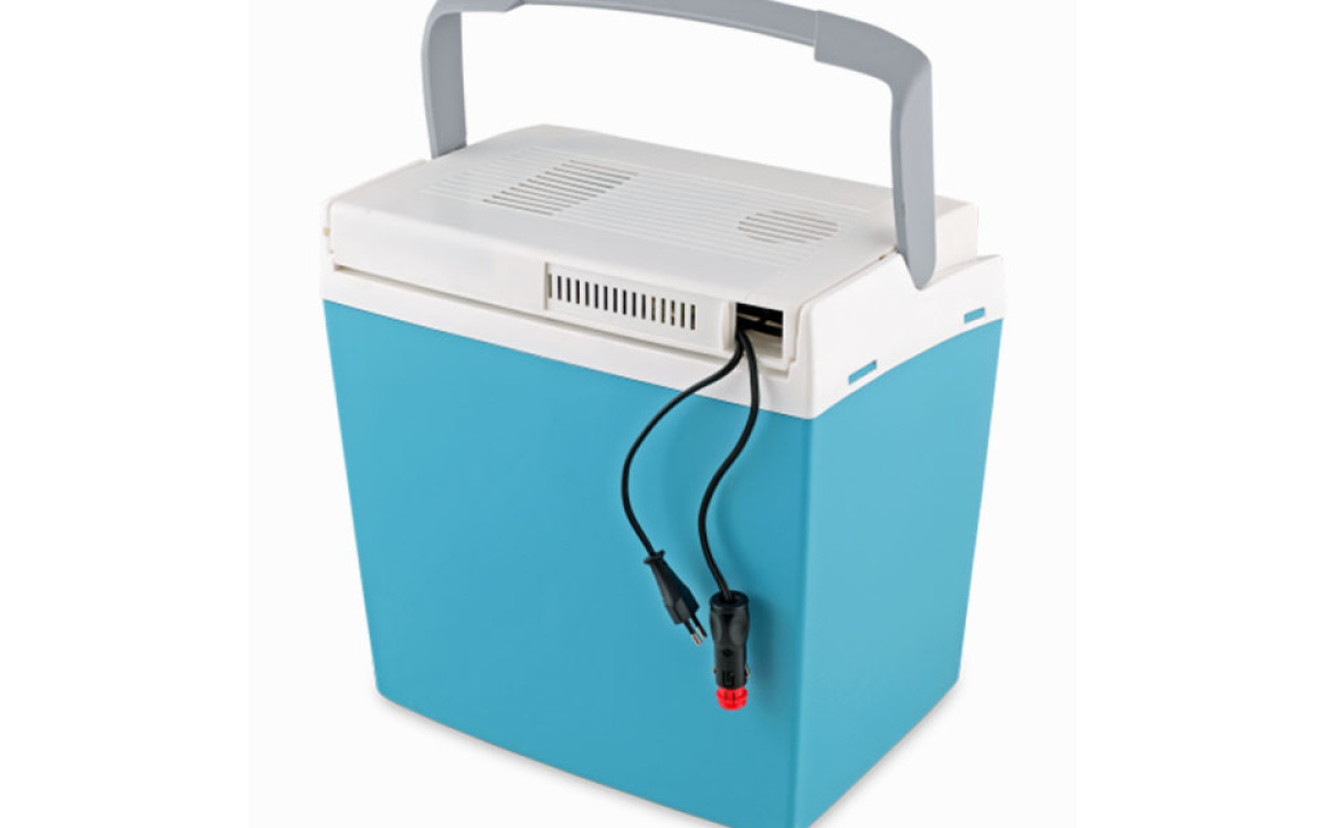 Принцип действия термоэлектрического контейнера (холодильника) основан на свойстве полупроводниковых пластин, это свойство получило название "эффект Пельтье". При протекании тока через полупроводниковую пластину одна сторона ее охлаждается (этой стороной пластина обращена внутрь контейнера), другая сторона - нагревается (эта сторона обращена наружу и охлаждается вентилятором).