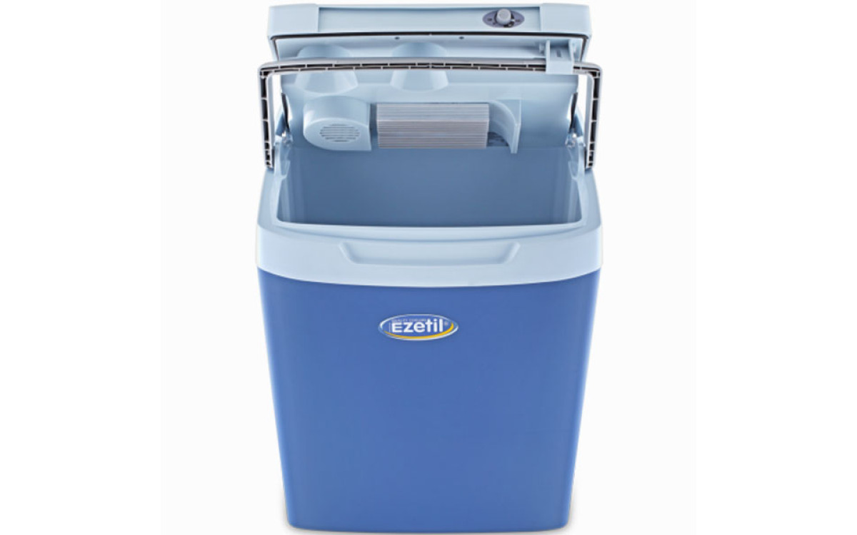 Принцип действия термоэлектрического контейнера (холодильника) основан на свойстве полупроводниковых пластин, это свойство получило название "эффект Пельтье". При протекании тока через полупроводниковую пластину одна сторона ее охлаждается (этой стороной пластина обращена внутрь контейнера), другая сторона - нагревается (эта сторона обращена наружу и охлаждается вентилятором).
