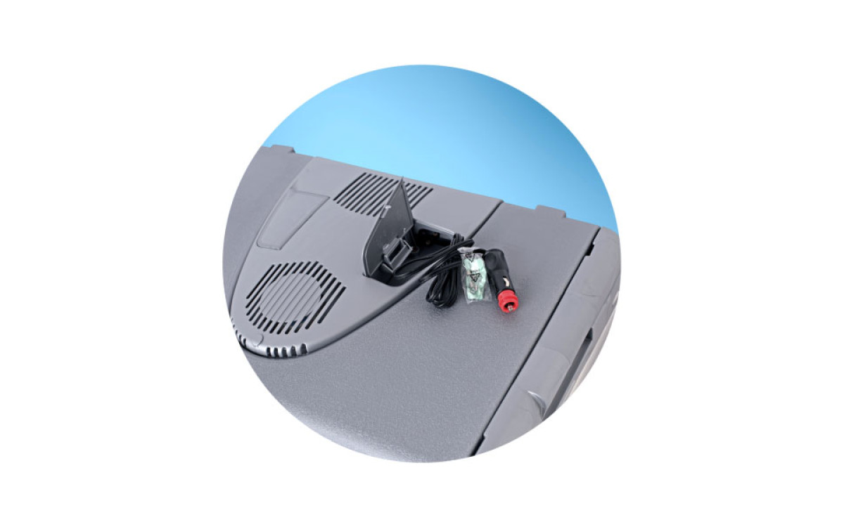 Принцип действия термоэлектрического контейнера (холодильника) основан на свойстве полупроводниковых пластин, это свойство получило название "эффект Пельтье". При протекании тока через полупроводниковую пластину одна сторона ее охлаждается (этой стороной пластина обращена внутрь контейнера), другая сторона - нагревается (эта сторона обращена наружу и охлаждается вентилятором).