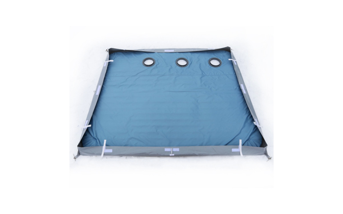- После установки палатки в гидро-теплоизоляционном дне края утепленного пола рекомендуется расположить поверх внутренней юбки палатки.