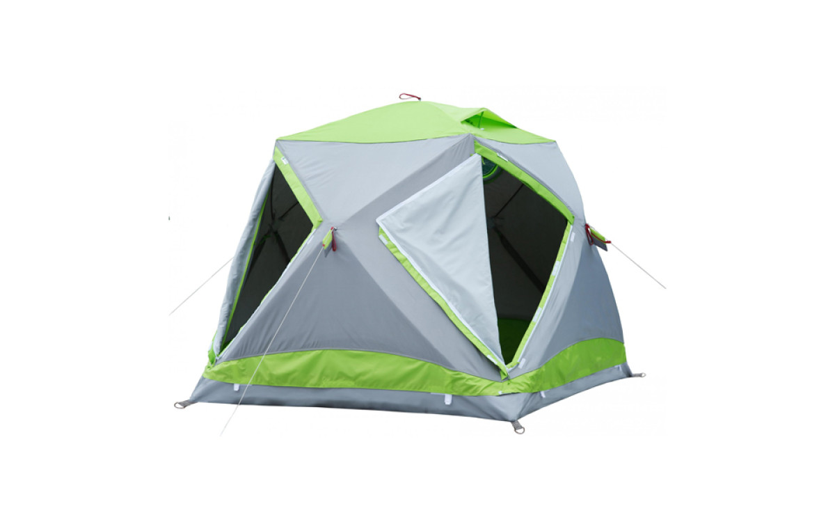 - Дополнительные петли позволяют легко перемещать волоком по льду раскрытую палатку, установленную в корытообразном днище, вместе со снаряжением, расположенном внутри палатки. Петли расположены в удобном для перемещения направлении.