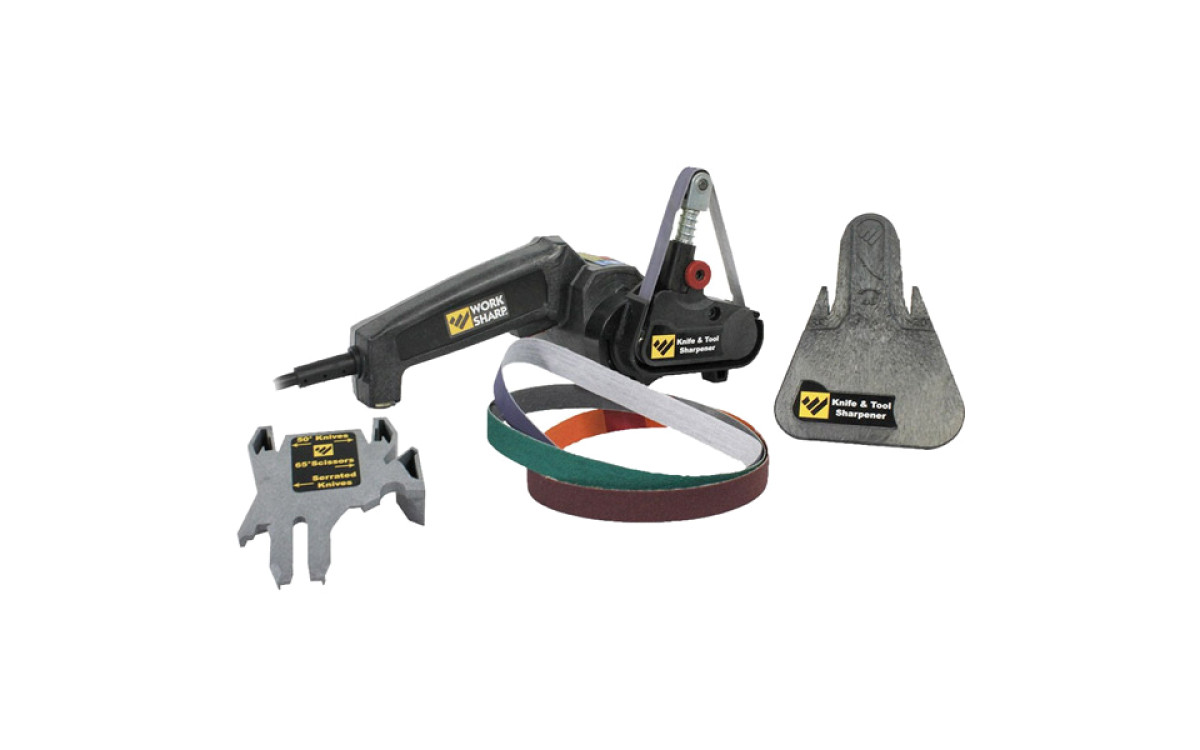 Оптимальное приобретение для тех, кто не привык экономить на собственной безопасности и качестве заточки инструмента. Универсальная электрическая точилка Work Sharp Knife & Tool Sharpener WSKTS-I – это, по сути, целый комплект, который состоит из следующих элементов: гибкие абразивные ленты (6 штук (P220, P80 и 6000), по 2 каждого типа), направляющие (40° (2х20°) для тонких и кухонных ножей, а также 50° (2х25°) для охотничьих и Outdoor ножей) и само устройство.