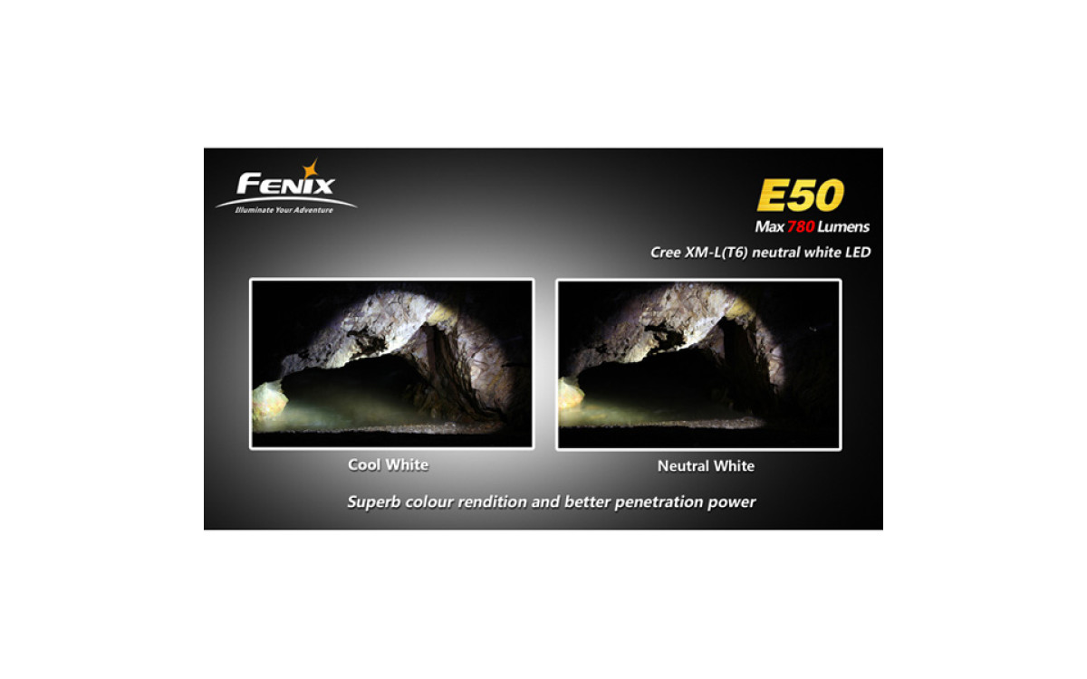 Fenix E50 NW — тонкий, сверхъяркий и удобный в использовании фонарь с нейтральным белым свечением. Такой свет, близкий к естественному солнечному, обеспечивает более комфортное для глаз восприятие подсвечиваемых объектов. За счет этого видимость будет лучше.