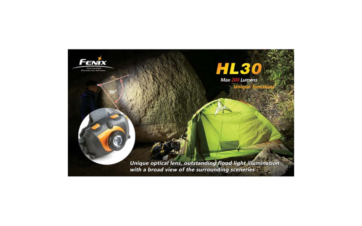 Fenix HL30 — фонарь для туристов. Вместо традиционного отражателя в нем установлена линза, которая обеспечивает яркий, но не ослепляющий свет на расстоянии до 40 метров. Фонарь будет удобно использовать как в лагере, так и при движении.