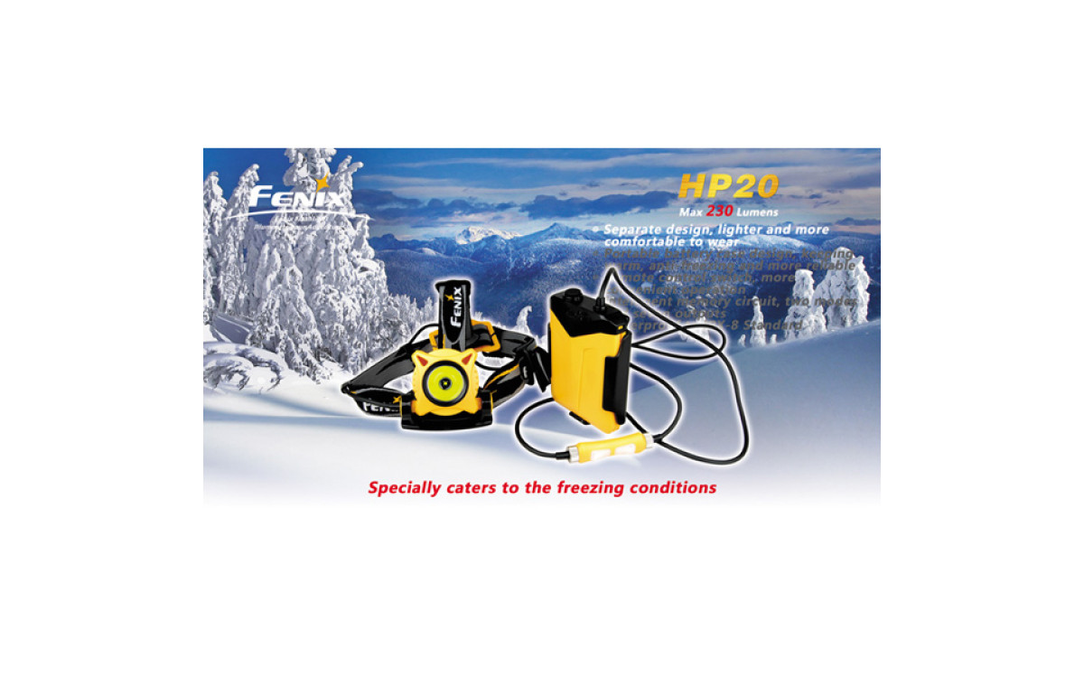 Профессиональный налобный фонарь для экстремальных условий. Работает под водой. Раздельная конструкция позволяет использовать фонарь при экстремально низких температурах: фонарь крепится на голове, а батарейный блок убирается под одежду для сохранения элементов питания в тепле. Управление фонарем вынесено на соединительный общий провод в виде пульта с подсветкой кнопок.