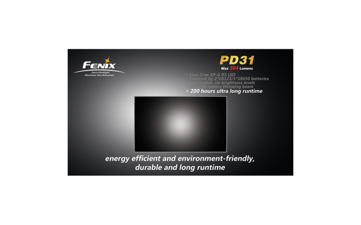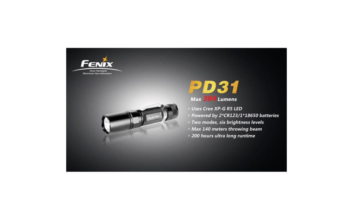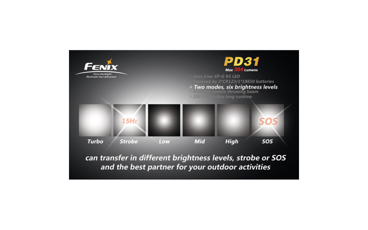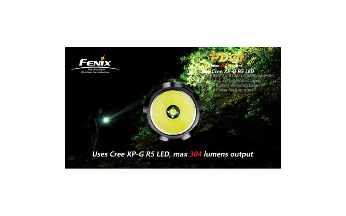 Основные отличия от модели PD30 Premium R5 - максимальная яркость 304 люмена по стандарту ANSI, габаритные размеры, возможность работы от АКБ 18650. Дальность луча - 140 метров. Стандартные аксессуары НЕ подходят. Выпуск модели ограниченный.