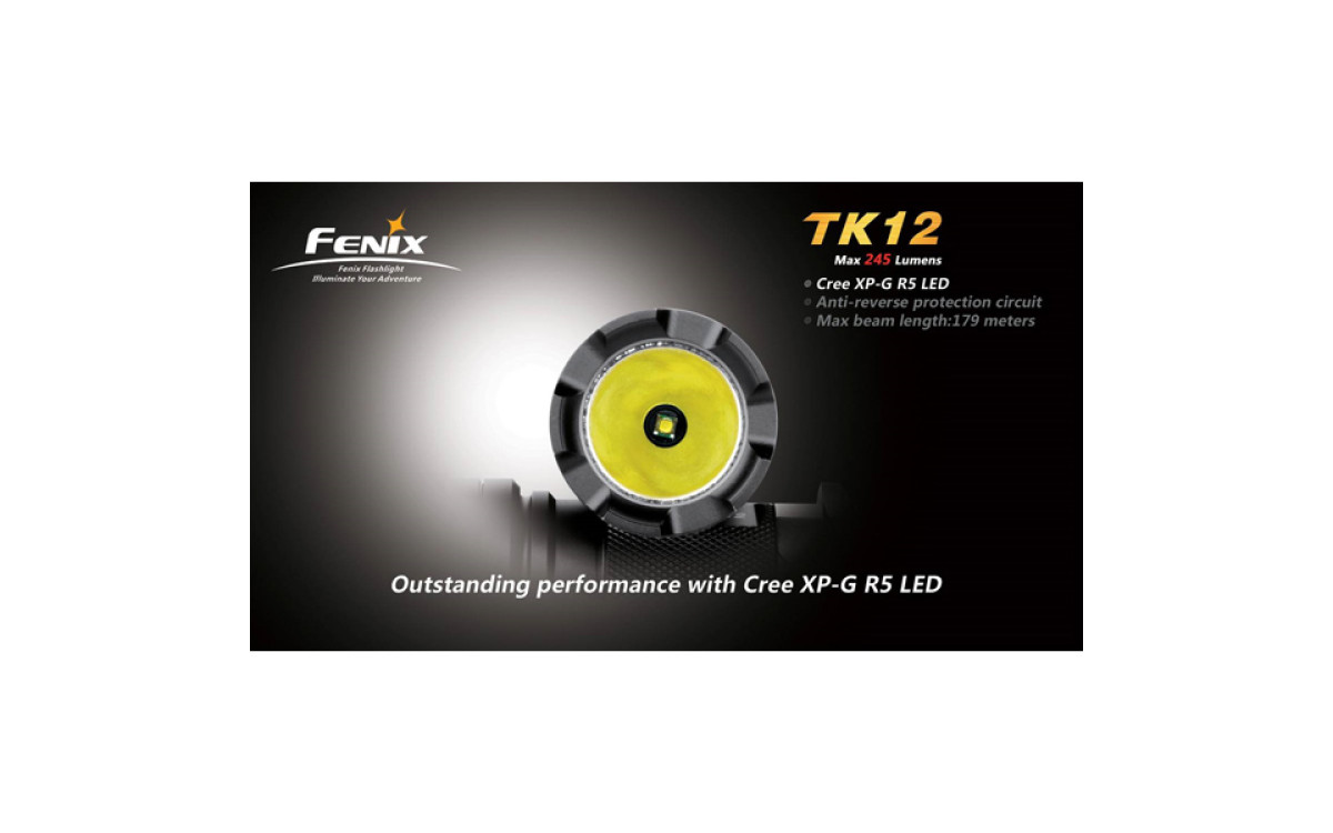 Тактический фонарь Fenix Tactical TK12 Premium R5 - обновленная версия фонаря ТК12. Основным отличием является: более мощный светодиод CREE PREMIUM XR-G R5. Самая качественная стабилизация в ТК серии на аккумуляторах 18650.