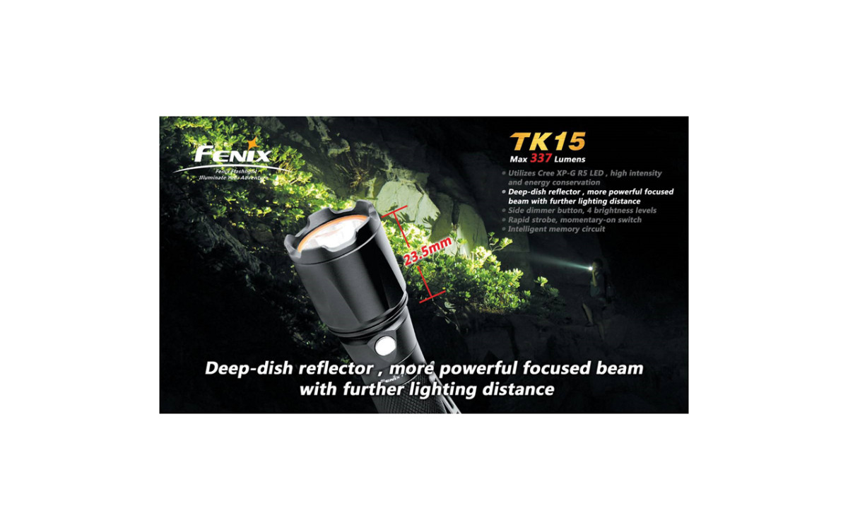 Надежный, мощный, практичный и водонепроницаемый тактический фонарь Fenix TK15 S2 лучше всего оценят охотники. Его можно установить на оружие (отдача не страшна) и подсоединить выносную кнопку. Фонарь работает от двух литиевых батареек типа CR123A или от аккумуляторов.