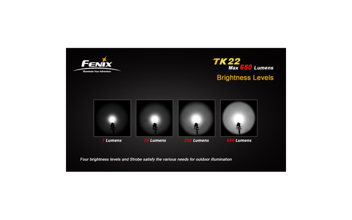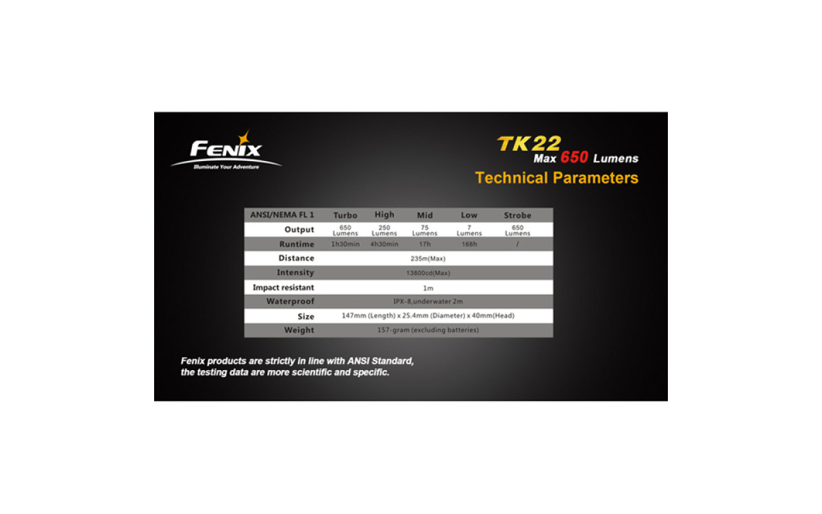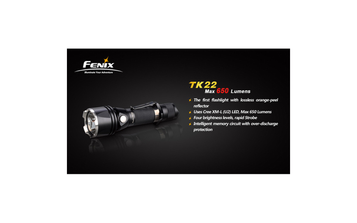 Переключение режимов кнопкой в головной части фонаря наряду с технологией поддержания постоянной яркости, а также водонепроницаемость согласно стандарту IPX8 делает из ТК22 надежного партнера в поисковых, спасательных работах, на охоте и т.д.