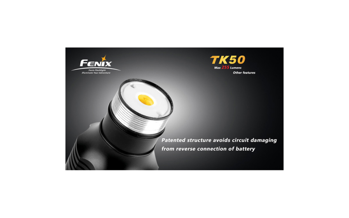 Fenix TК75 имеет цифровую регулировку яркости (процессор поддерживает яркость постоянной по мере разряда батарей), предупреждение о низком заряде батарей и запоминает последний выбранный режим работы. Защищен от переполюсовки элементами питания.