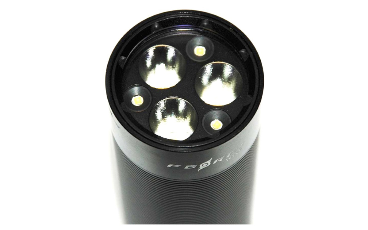 - Фонарь Ferei W155CW XM-L2 имеет три режима работы: боковой засвет (без центрального луча) - это когда горит три маленьких диода и создают хорошее без центрального луча мягкое освещение (реальных 1000 люмен); центральный луч - это когда горит три центральных диода, 50% мощности (реальных 1500 люмен); оптимальный свет для подводной видеосъемки - когда горят все шесть диодов, 100% мощности (реальных 200-2500 люмен).