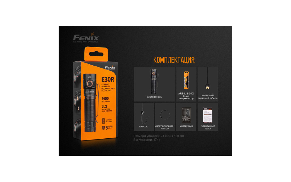 Основные преимущества фонаря Fenix E30R: