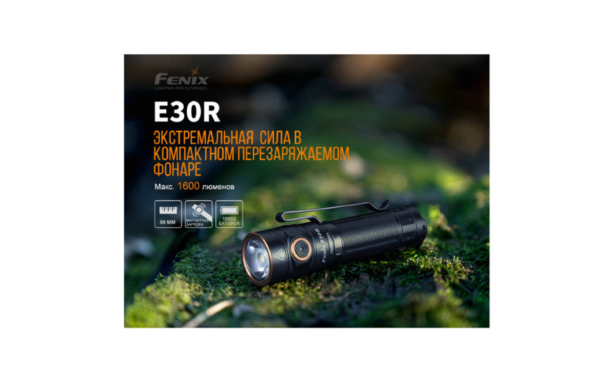 Fenix E30R - это новая модель карманного фонаря из экономичной серии со сбалансированным чистым лучом и магнитной зарядкой. Е30R обладает всеми функциями профессионального фонаря - яркостью до 1600 люмен, специальной оптикой с линзой, усиливающей световой поток, магнитом в хвосте корпуса, двухпозиционной клипсой и кнопкой из нержавеющей стали.