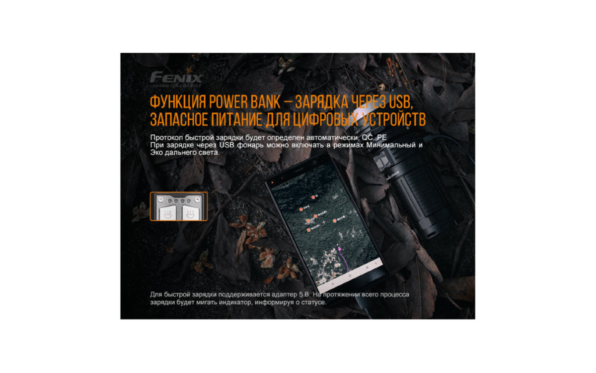 - Функция Power Bank - разрядка через USB, запасное питание для цифровых устройств.