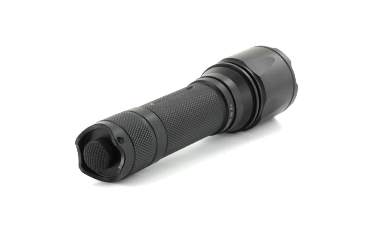 Не смотря на сваи габариты, весит очень мал, и составляет всего 105 г (без элементов питания). В качестве излучателя установлен светодиод XP-L HI, в режиме «Максимальный» яркость достигает 900 люмен, чего вполне хватает осветить объекты на расстоянии 310 метров. С торцевой части установлена тактическая кнопка для переключения 4-х режимов, благодаря ей, можно мгновенно включить самый яркий режим.