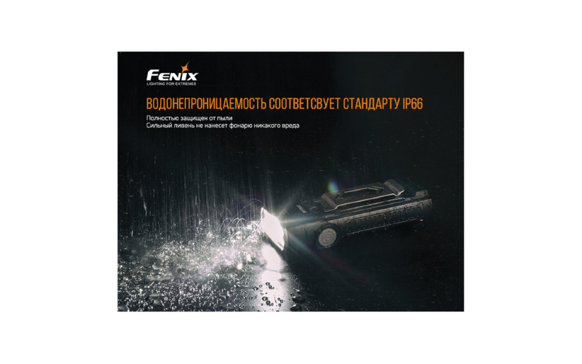 - Фонарь полностью защищен от пыли и попадания посторонних объектов, а также сильных струй воды.
