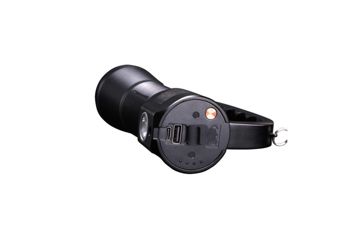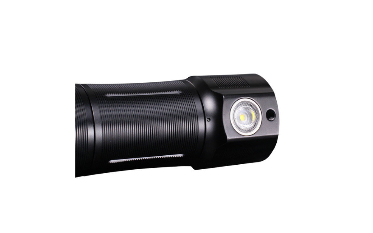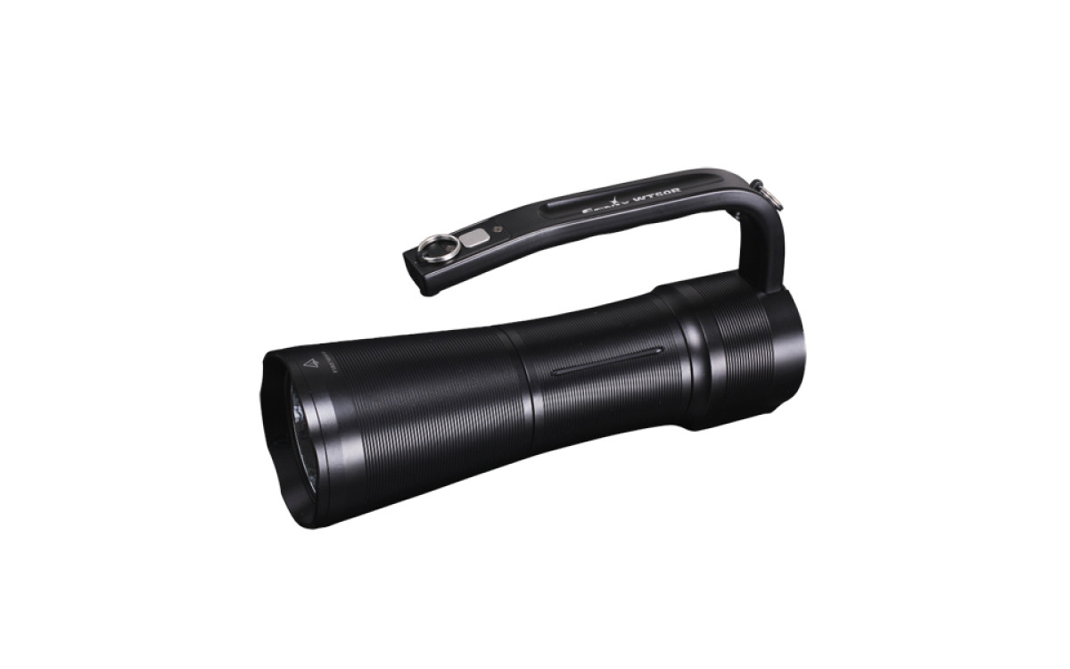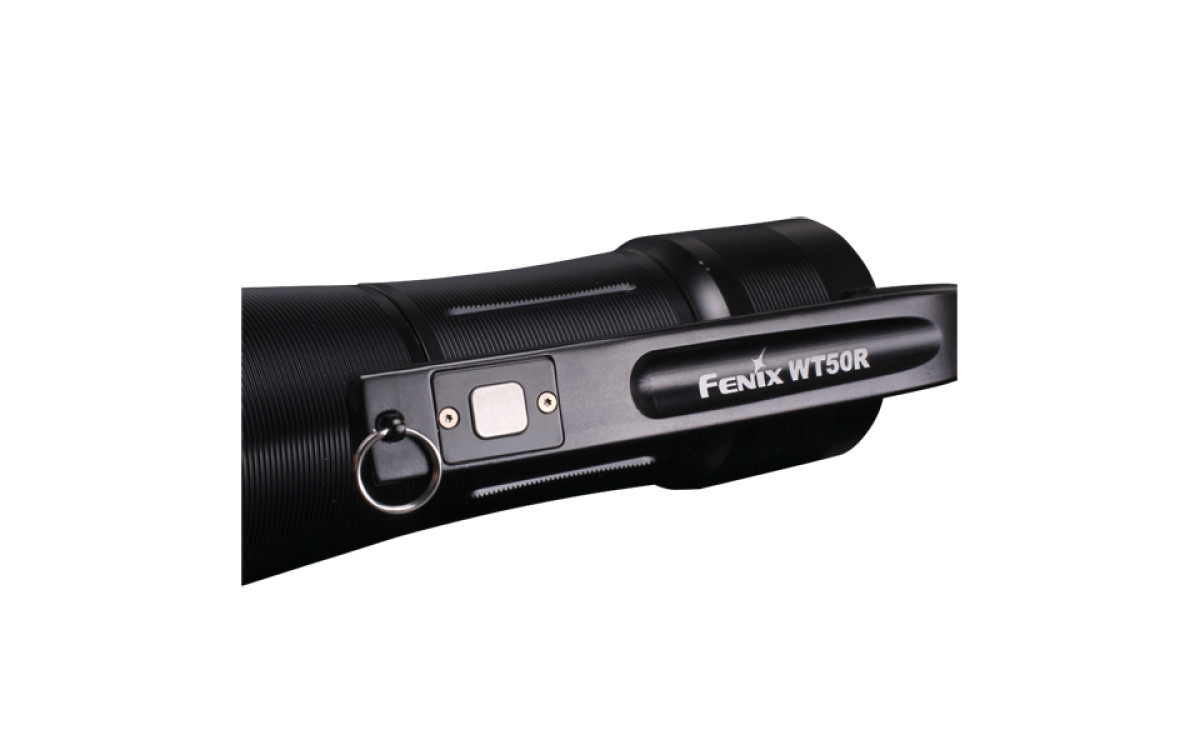 Ручной поисковый фонарь Fenix WT50R, задний свет может служить настольной лампой с максимальной яркостью 500 люмен. Фонарь с двумя источниками света: передним (основным) и задним боковым, суммарной максимальной яркостью 3700 люмен.