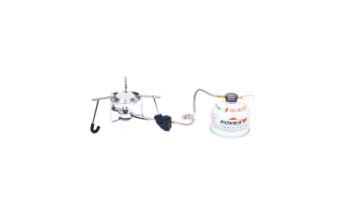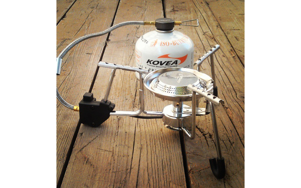 Газовая горелка Kovea Exploration со шлангом — отличный вариант для кемпинга, где не особо важен размер и вес.