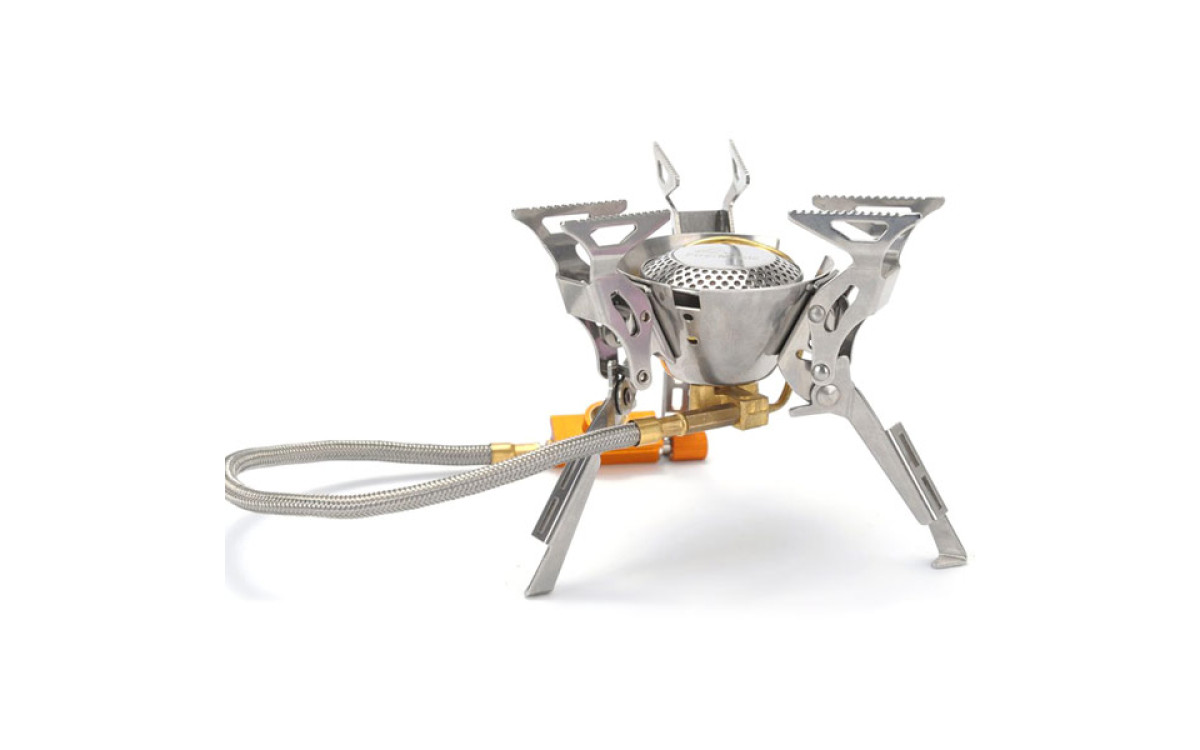 Три парных складных опорных ножки из нержавеющей стали дополнительно усилены, что обеспечивает устойчивость горелки на любой поверхности. Вся конструкция обеспечивает высокую прочность модели.