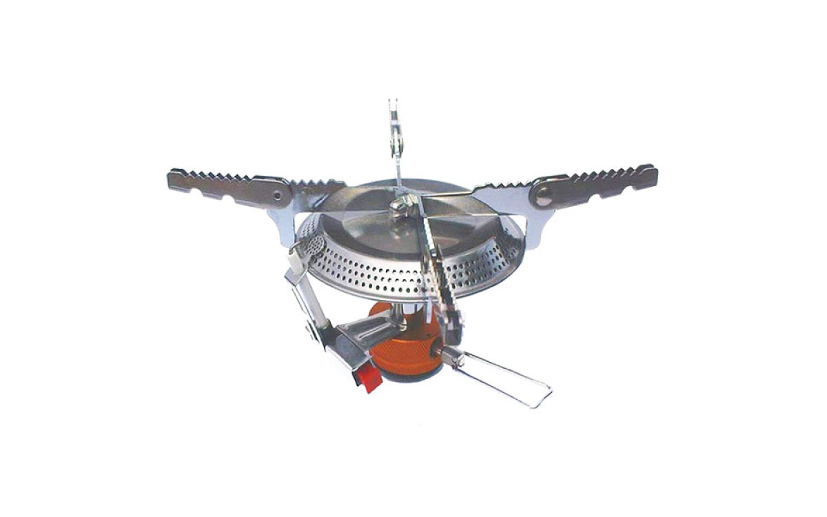 Складные упоры-держатели используются в двух положениях: раскрытом – под большие котлы или сковородку, и закрытом – для небольших котелков и кружек.