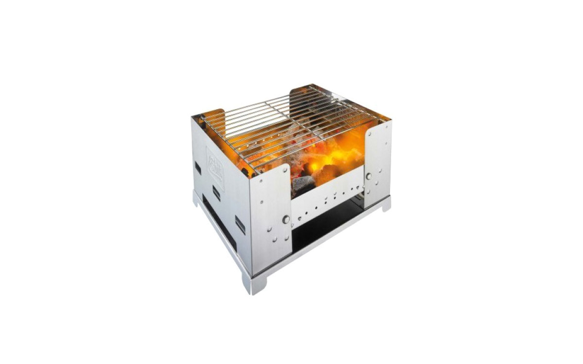 Гриль из нержавеющей стали компактного размера для приготовления блюд на природе. Легко складывать и транспортировать, занимает мало места.