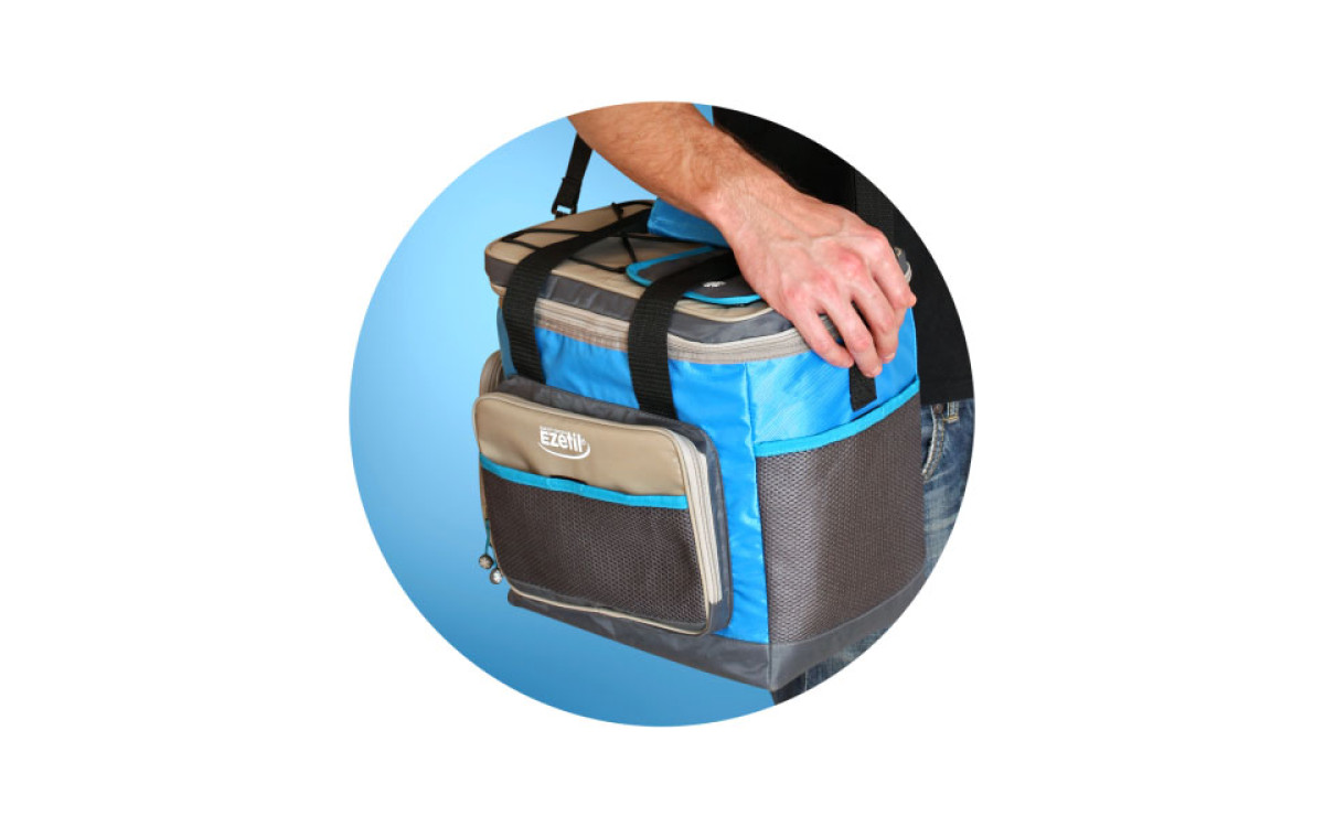 - При температуре снаружи +32 градуса сохраняет температуру внутри от +5 до +15 с аккумуляторами холода 2 x EZetil® 400g 15 ч