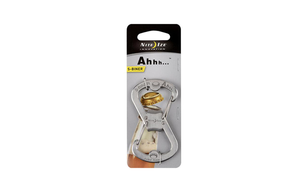 Компактный двойной карабин S-образной формы, выдерживающий нагрузку до 4.5 кг со встроенной открывашкой для бутылок.