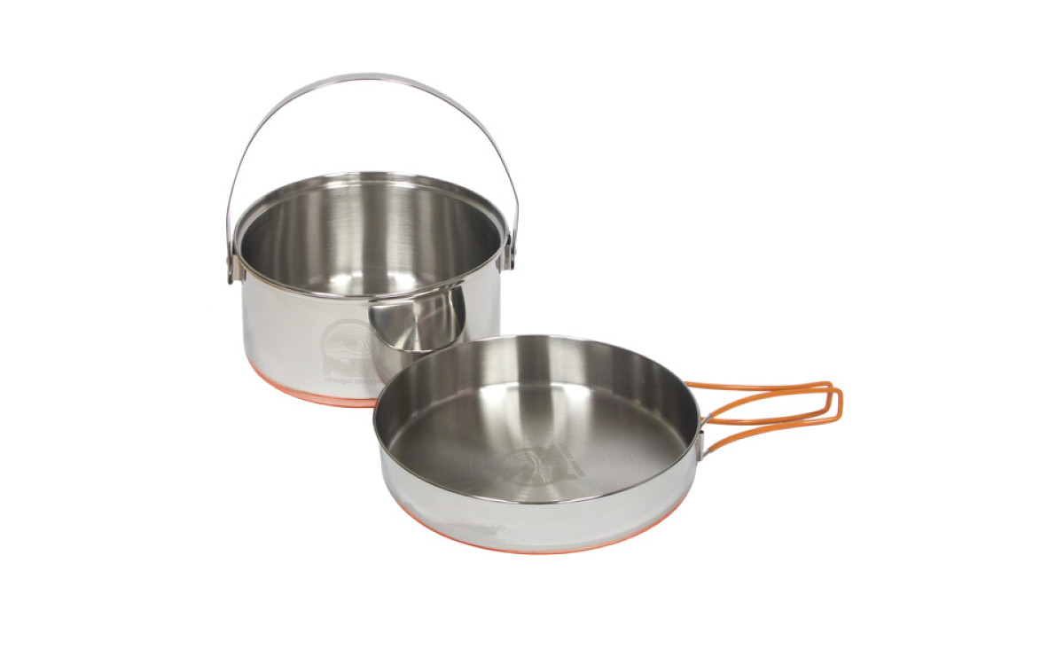 Кастрюля из нержавеющей стали с дном, омедненным для лучшей теплопроводности.