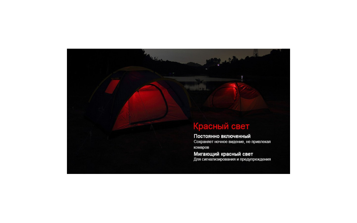 - Красный свет 1,5 люмен — очень удобен ночью в палатке