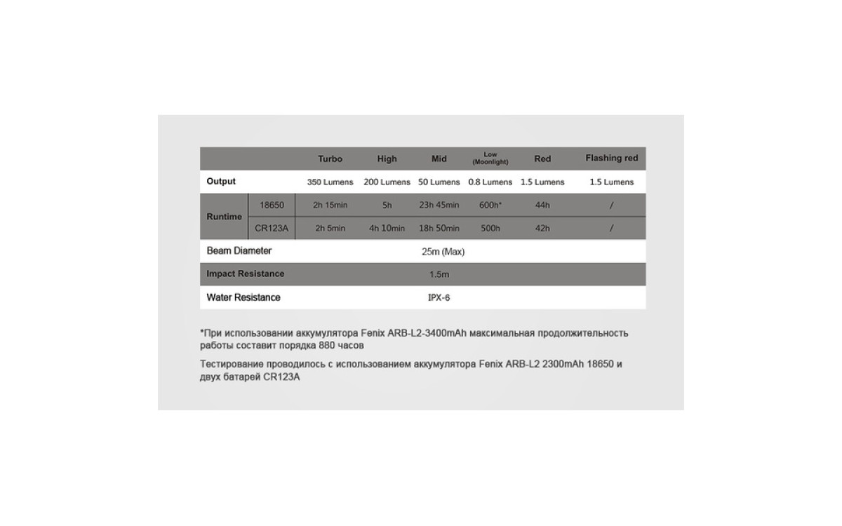 - Внимание! До 880 часов работы в режиме светлячка на аккумуляторе 18650 3400 мАч