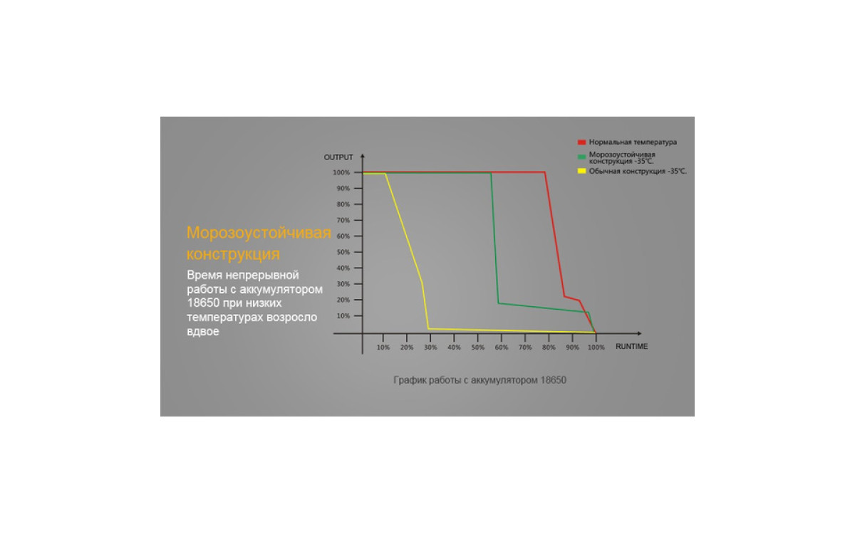 - Способность работать на 18650 при низких температурах до −35С в два раза дольше, чем обычные конструкции благодаря фирменному дизайну Феникса. За это фонарю дали неофициальное название — ПИНГВИН (кстати, небольшое сходство есть, согласитесь)