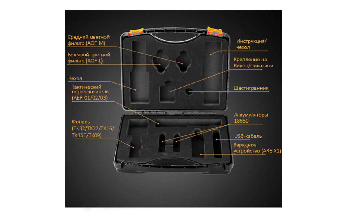 Совместим со следующими моделями фонарей: Fenix TK09, TK15C, TK16, TK22, TK32, PD35, PD35TAC, LD22 2015, и другими.
