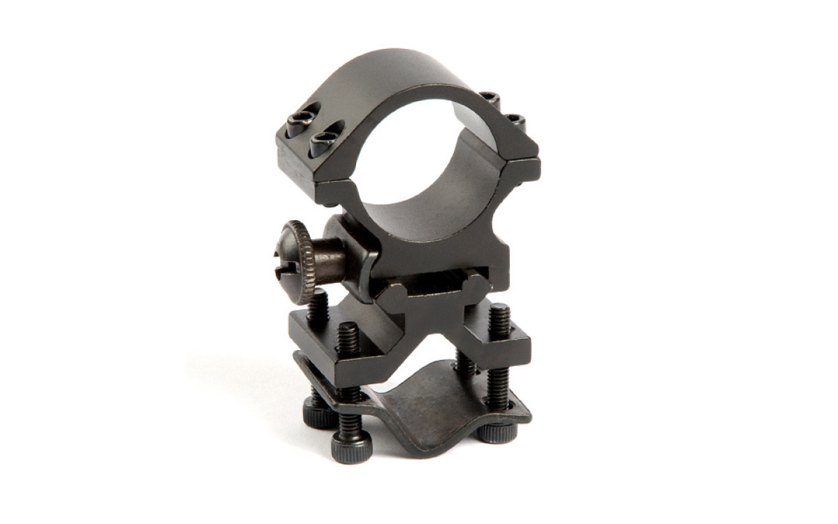 Универсальное быстросъемное крепление. Конструкция позволяет установить его прямо на ствол или на планку Вивера.