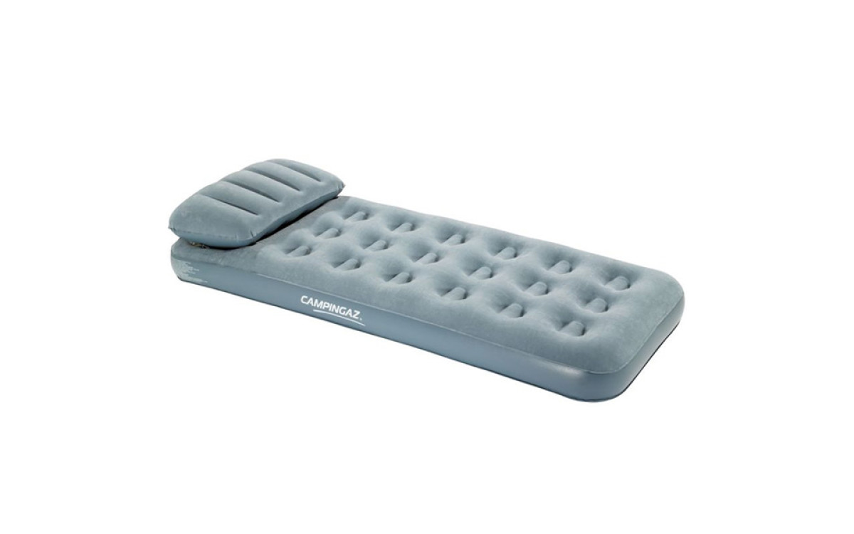 Легкая одноместная надувная кровать с подушкой и велюровым покрытием.