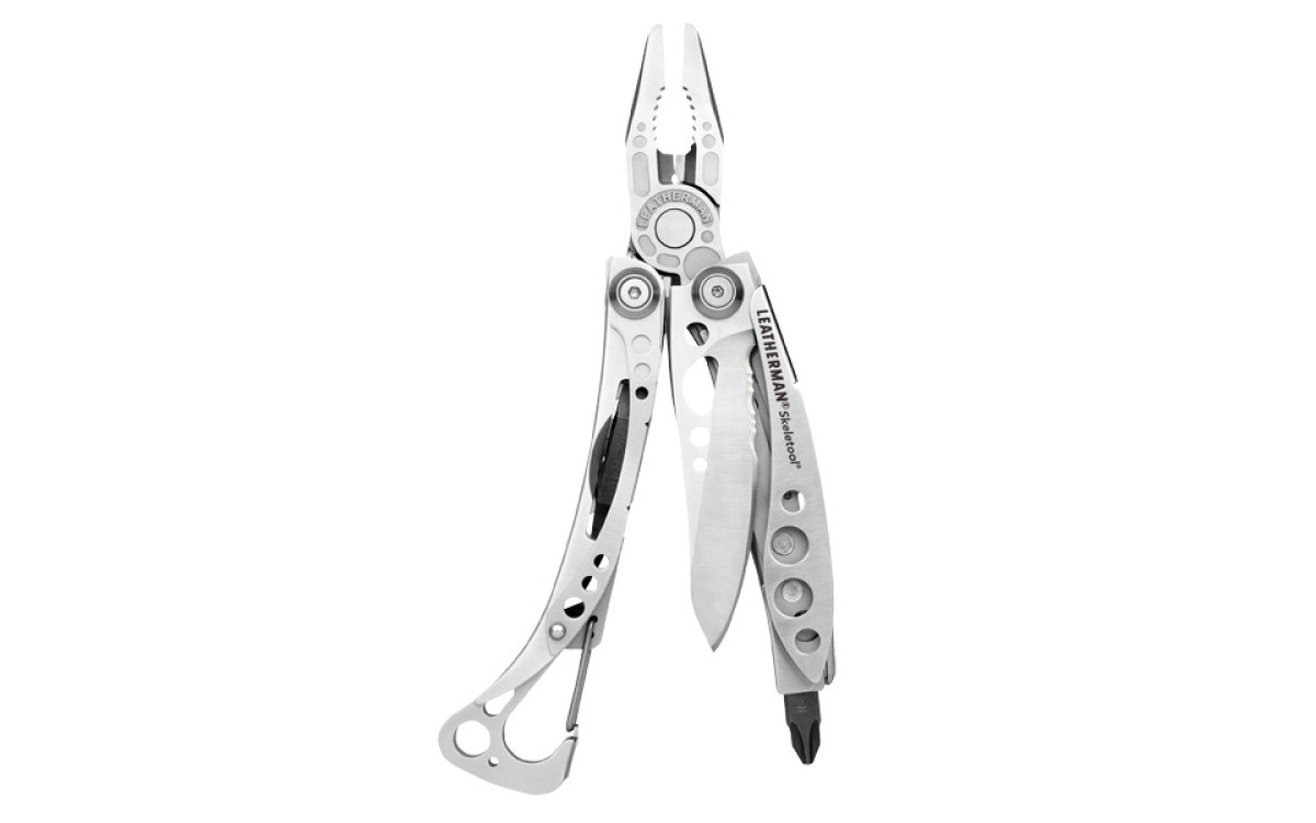 При весе всего в 140 грамм, Leatherman Skeletool имеет нож из нержавеющей стали с прямой и серрейторной заточкой, плоскогубцы, битодержатель, совмещенный с открывалкой карабин и съемную поясную клипсу. Skeletool - это то, что вам нужно!