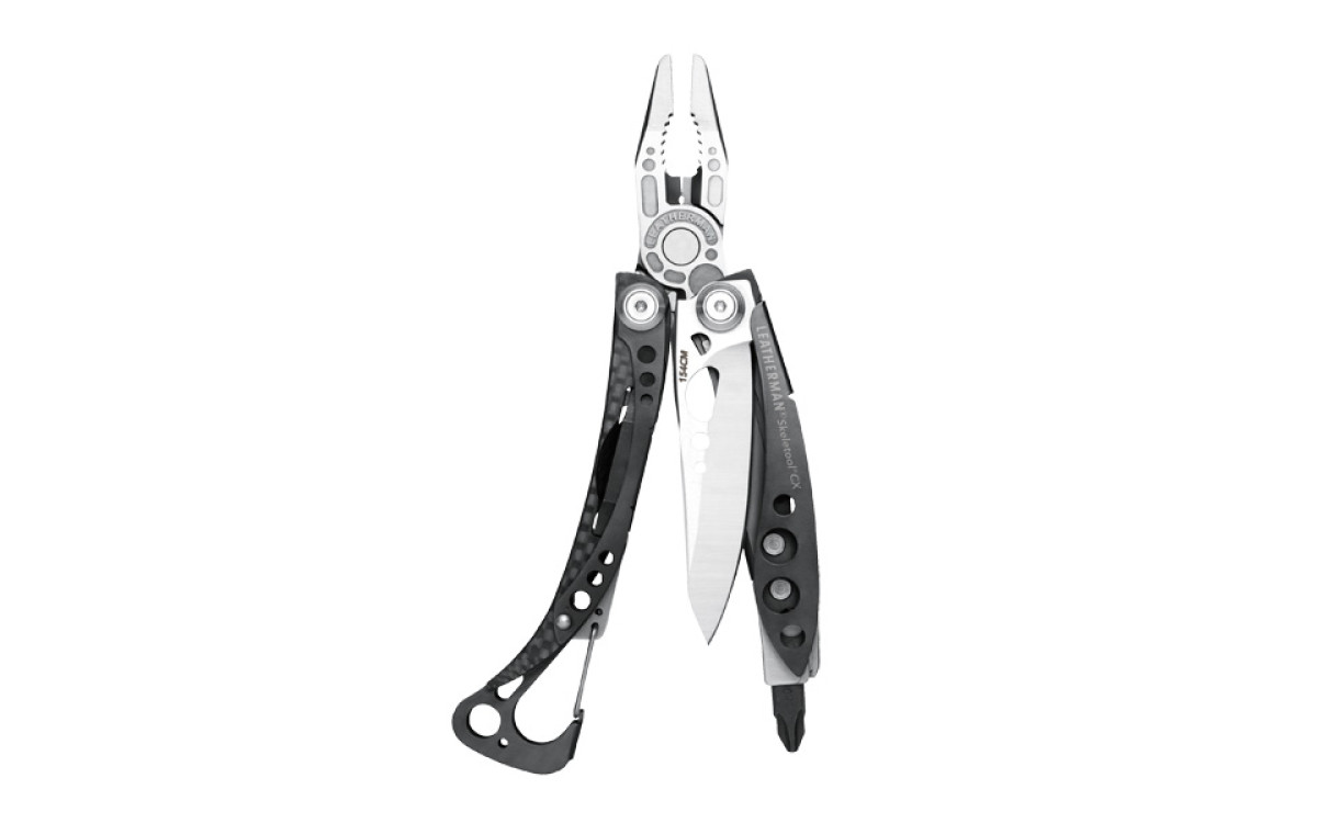 В Leatherman Skeletool CX включены только самые необходимые инструменты — нож из стали 154CM, плоскогубцы, битодержатель, совмещенный с открывалкой карабин, съемная поясная клипса. В большинстве случаев больше вам и не понадобится, зато Skeletool CX получился компактным и очень легким. Кроме того, на его рукоятки нанесено модное карбоновое покрытие.