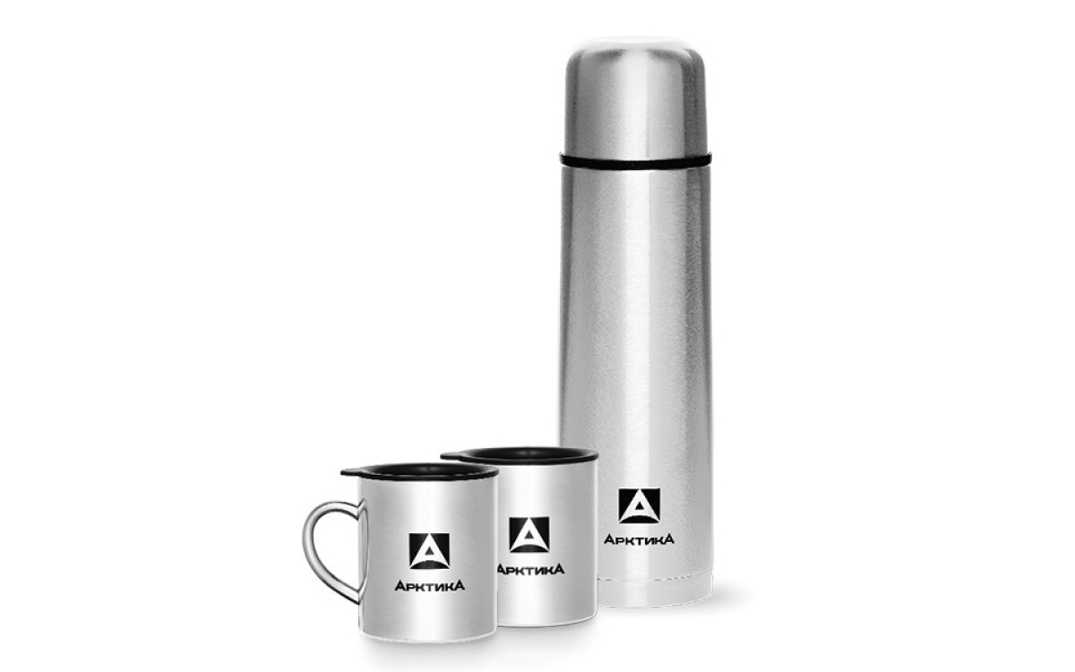 Набор из термоса для напитков Арктика 1 литр и 2-х кружек