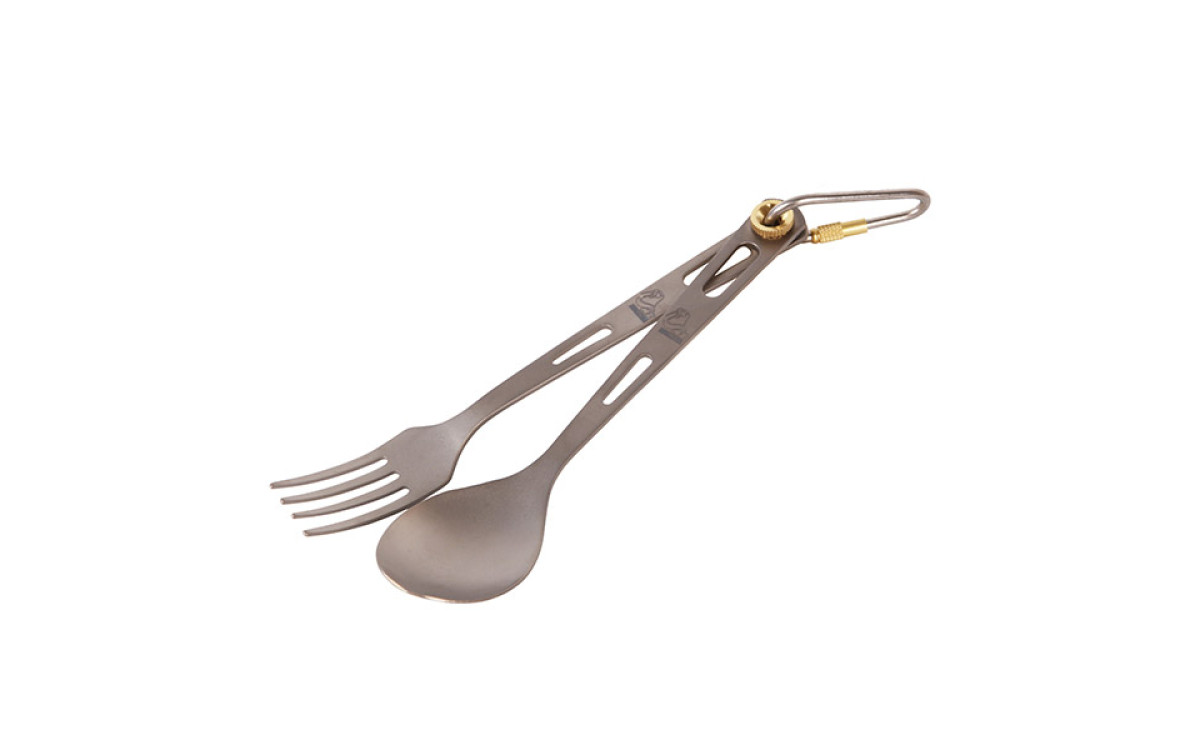 Набор столовых приборов - ложка и вилка. В комплект входят карабин и чехол.