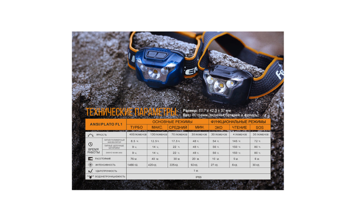 | Яркость | 400 люмен | 130 люмен | 70 люмен | 30 люмен | 30 люмен | 4 люмен | 30 люмен |