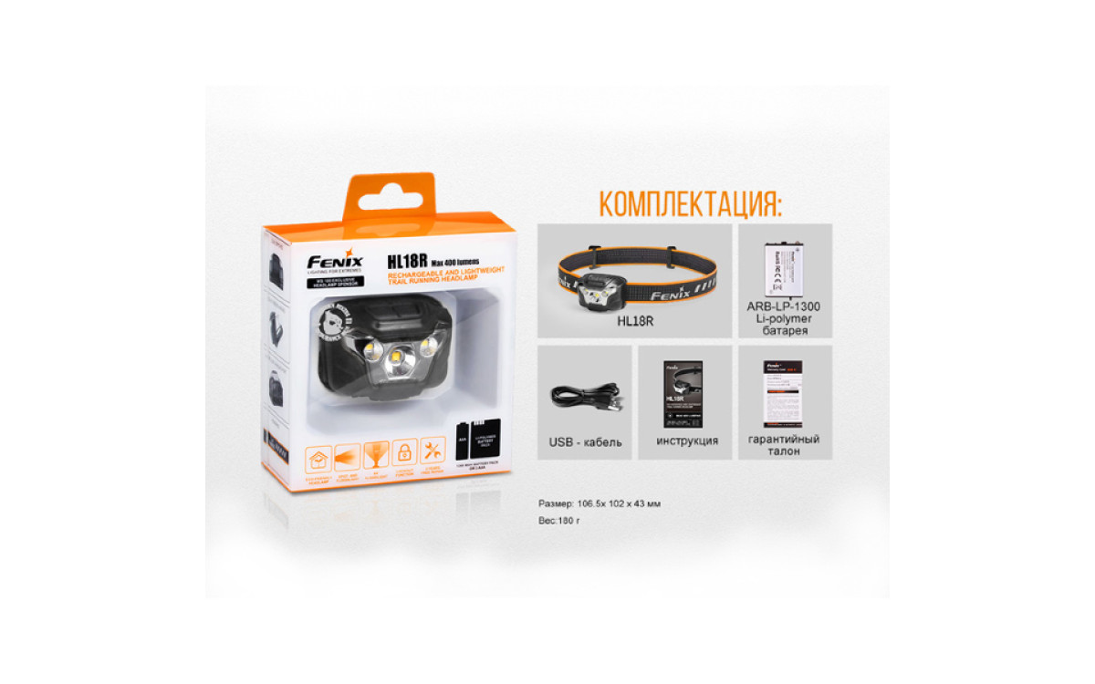 | Комплектация | Фонарь HL18R, аккумулятор ARB-LP-1300Li-Polymer, налобное крепление, кабель для зарядки, инструкция, гарантийный талон | ||||||