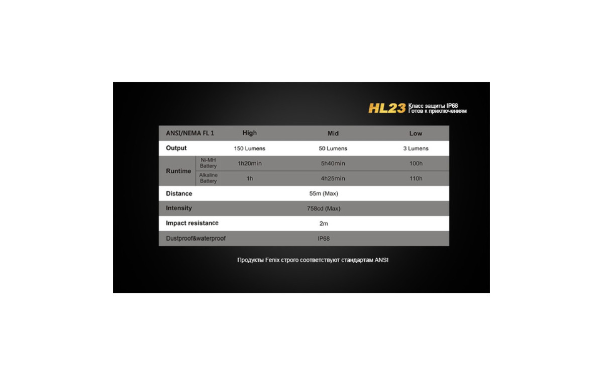 Прочный алюминиевый корпус и водонепроницаемая конструкция позволяют налобному фонарю Fenix HL23 с классом защиты IP68 быть готовым ко всему, на что вы решитесь. Оснащенный мощным светодиодом Cree XP-G2, при работе от одной "пальчиковой" батарейки, этот налобник обеспечивает яркость до 150 люмен с дистанцией освещения 55 метров. В довершении 3 режима яркости делают HL23 отличным выбором для ночных приключений.