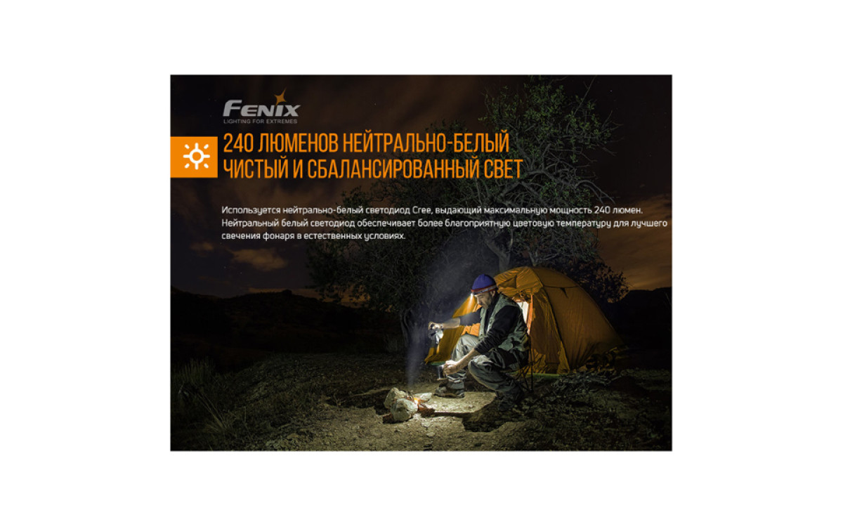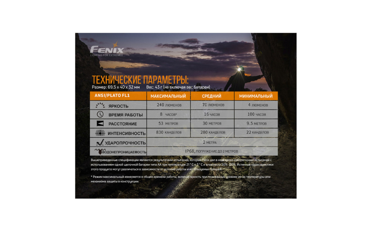 - Максимальная яркость 240 люмен, максимальное время работы 100 часов.