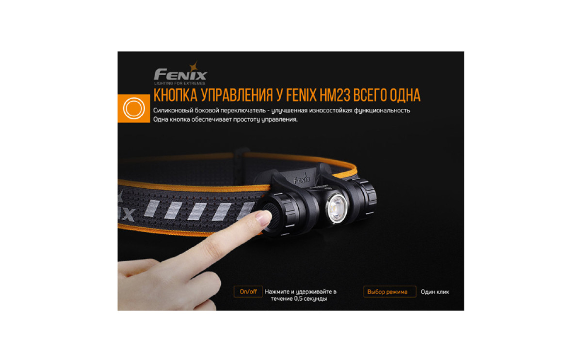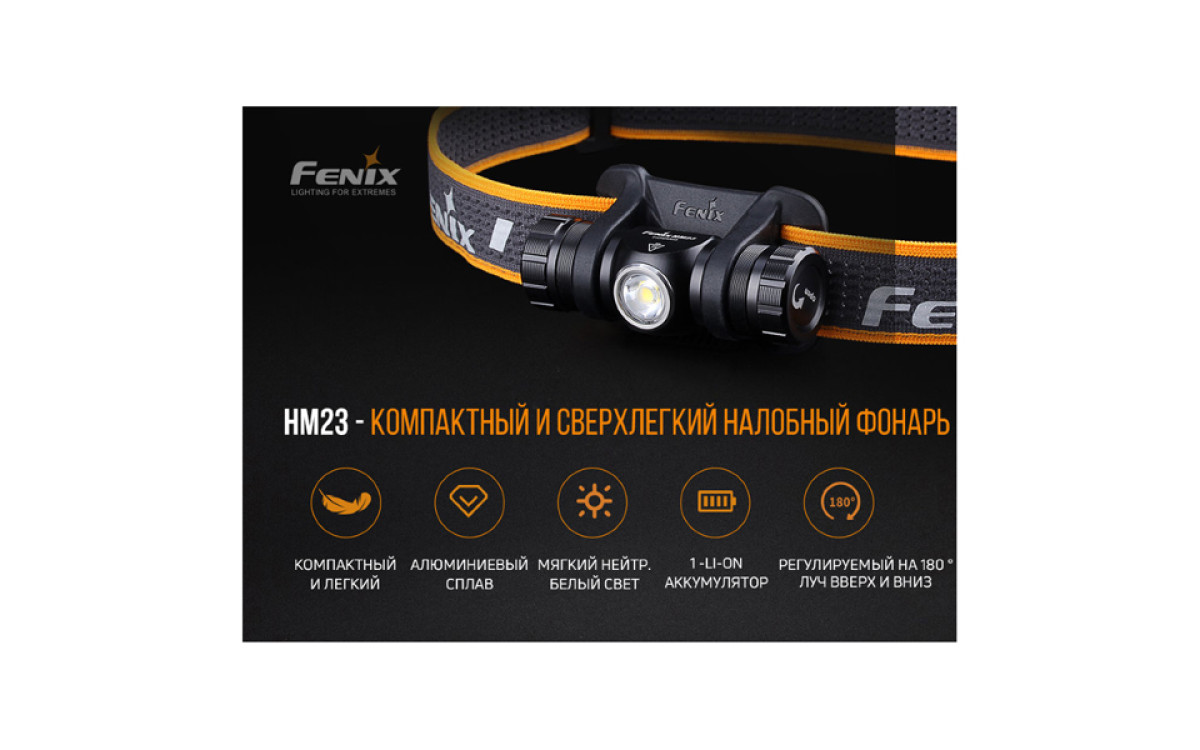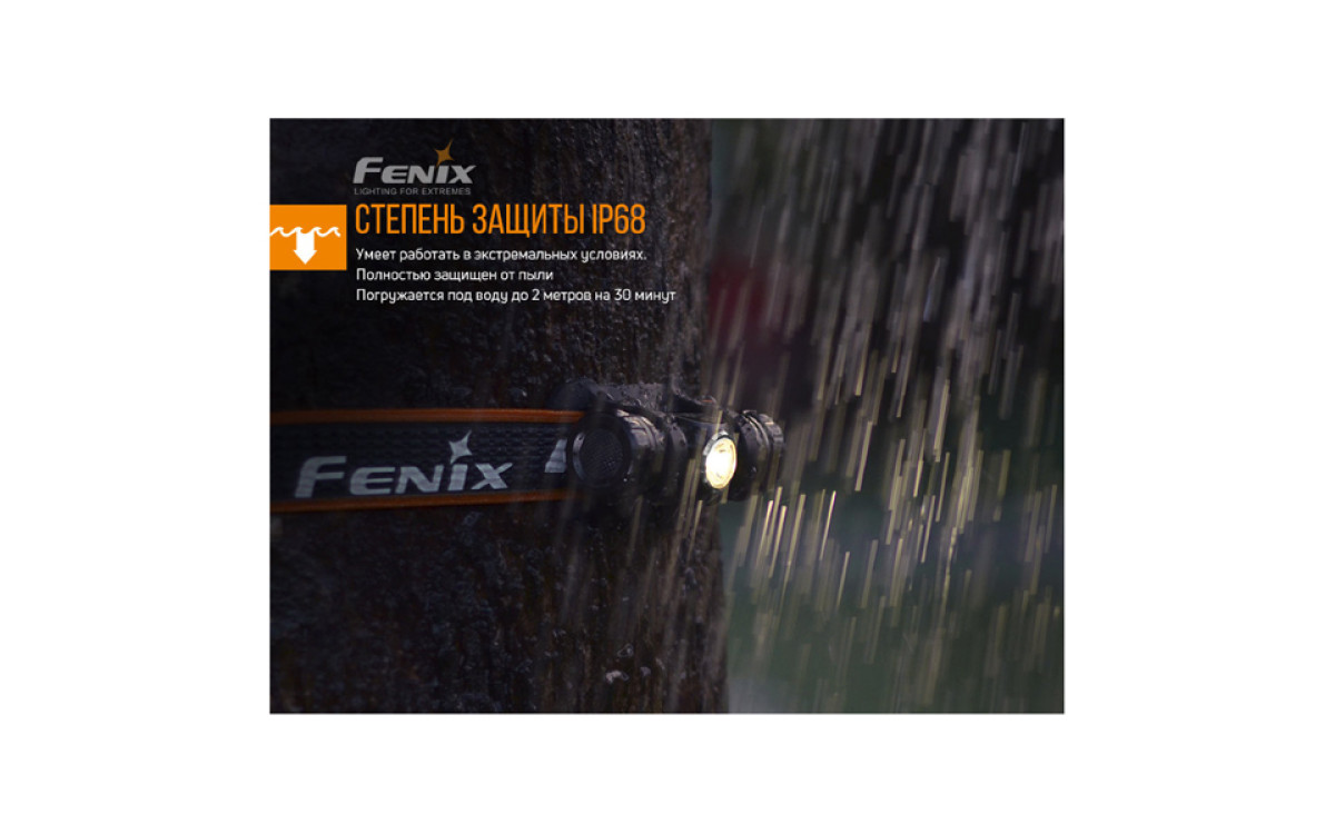 - Фонарь Fenix HM23 полностью водонепроницаем - он не боится сильных струй воды, в него не попадает пыль и влага и он может погружаться на глубину до 2 метров в течение 30 минут.