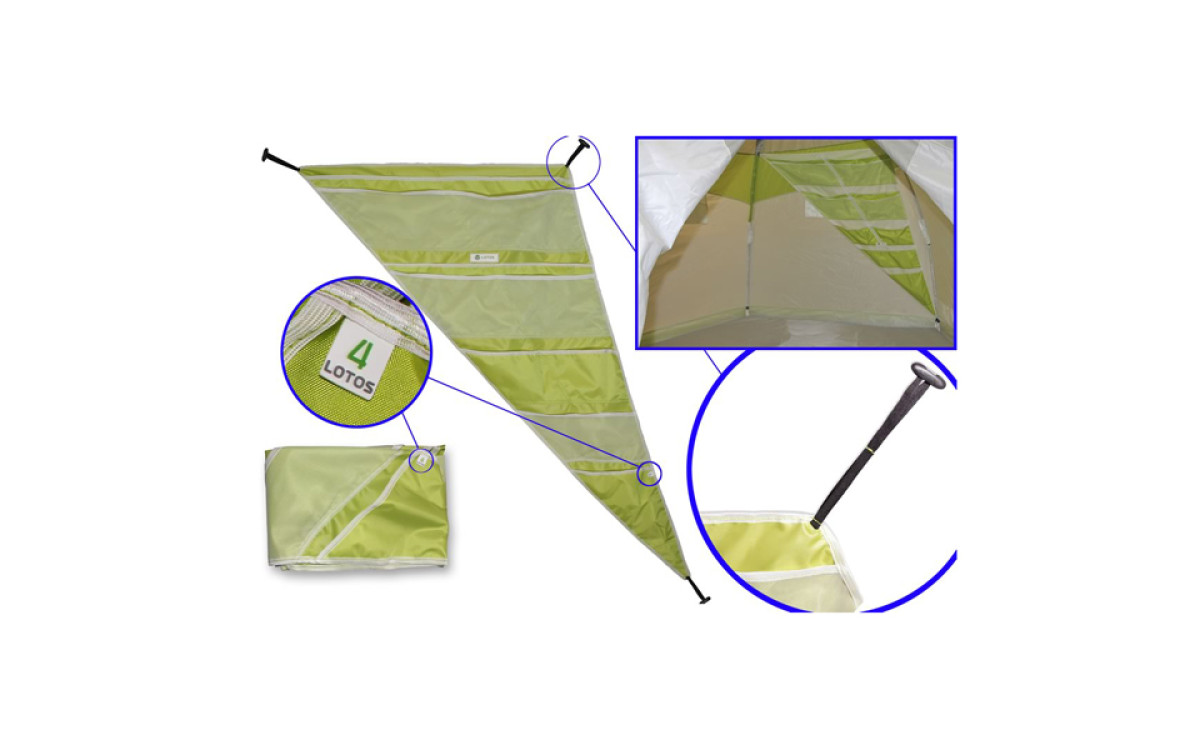 - Органайзер ЛОТОС 4 предназначен для использования в палатках, собранных на универсальном быстросборном каркасе "ЛОТОС 4". Используется для палаток: ЛОТОС 4, ЛОТОС 4 Фулл и на старых моделях зимних палаток на каркасе ЛОТОС 4 ("Профессионал").