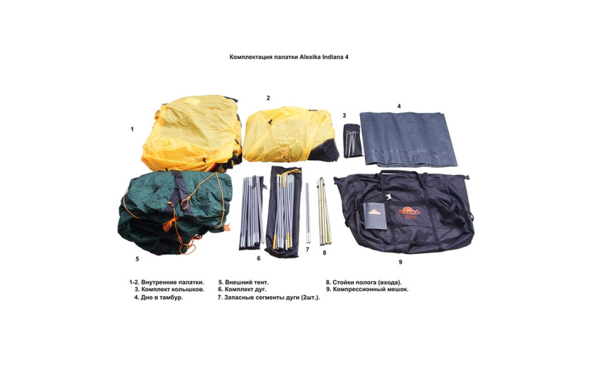 Палатка очень ветроустойчивая. Конструкция, швы и материалы обеспечивают полную водонепроницаемость - самые нагруженные узлы дополнительно усилены специальной прочной тканью и защищены от истирания, а все швы проклеены термоусадочной лентой. Высота тамбура - 180 см. Alexika Indiana 4 транспортируется в удобном чехле с компрессионными ремнями и для своих размеров она очень компактна в сложенном виде.