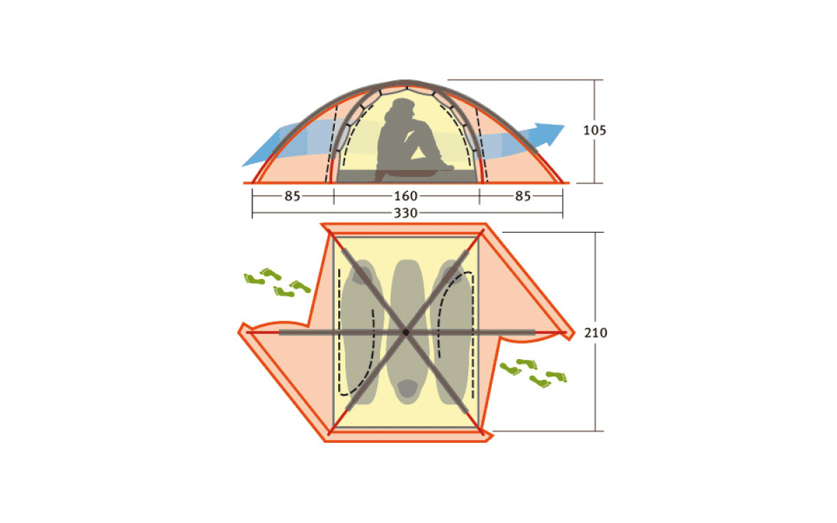 - Тент: Nylon 30D 250T RipStop Silicon 3000 mm