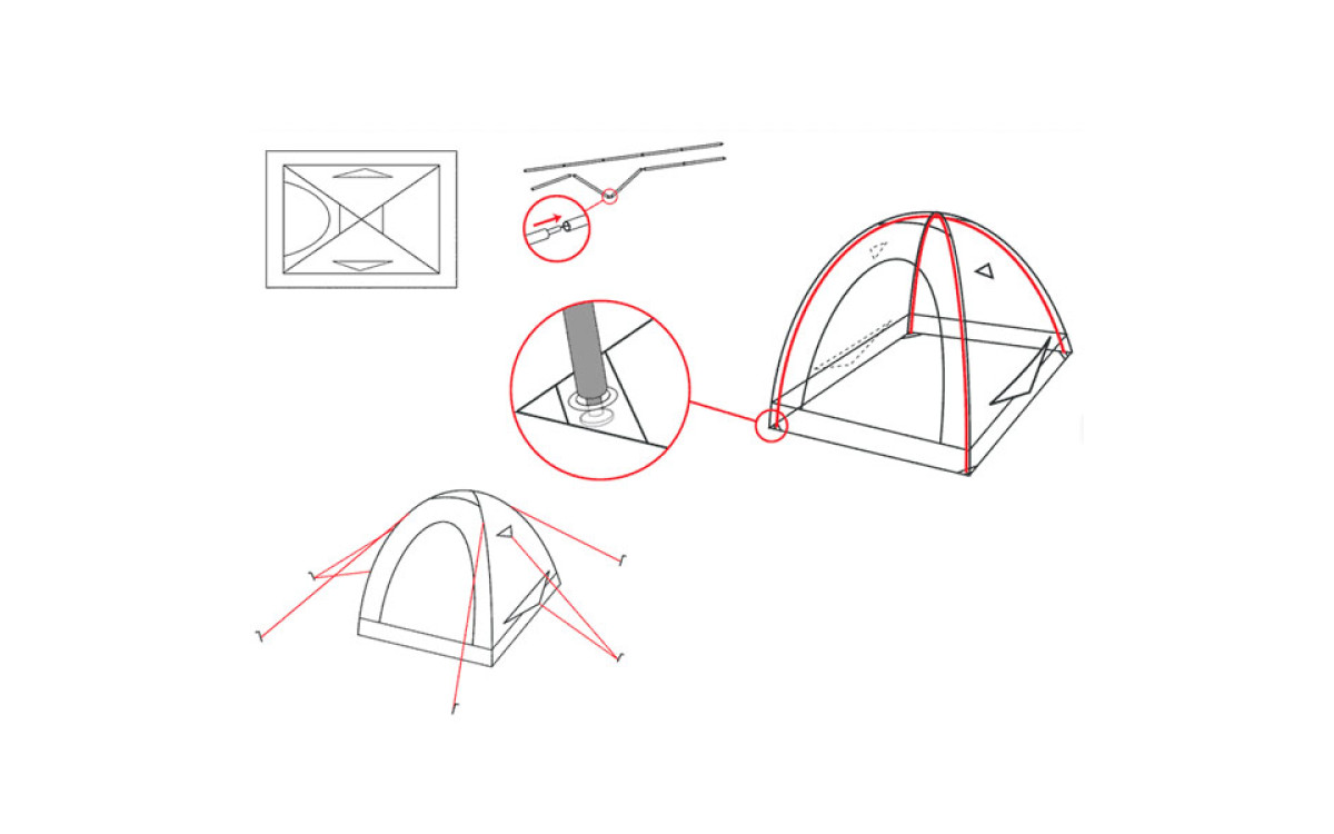 - Узлы палатки, испытывающие высокие нагрузки, усилены более прочной тканью.