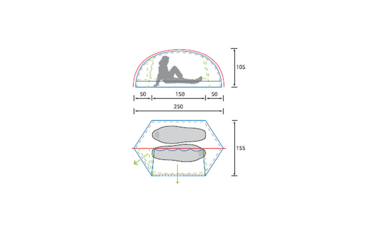 Лёгкая однодуговая двухместная трекинговая палатка.