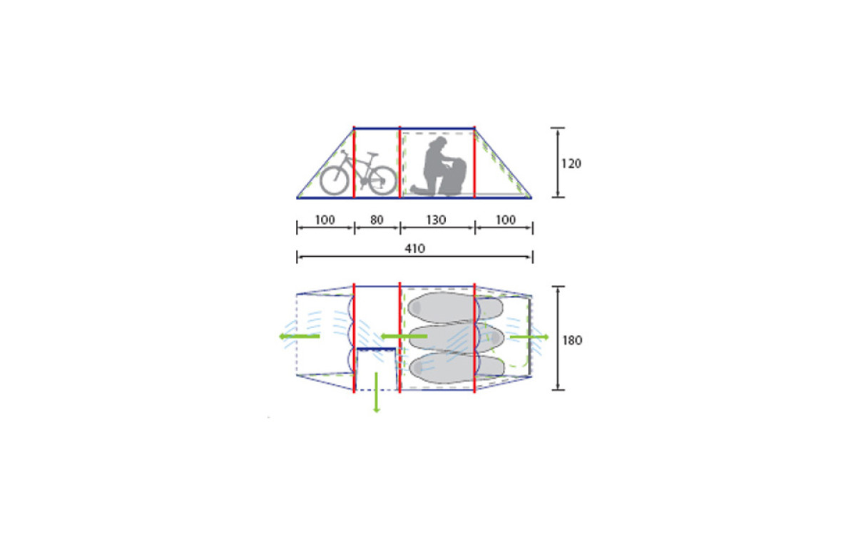 Alexika Tunnel 3 - палатка типа "полубочка" с большим тамбуром. Отлично подойдет для путешествий на велосипедах или с большим количеством багажа.